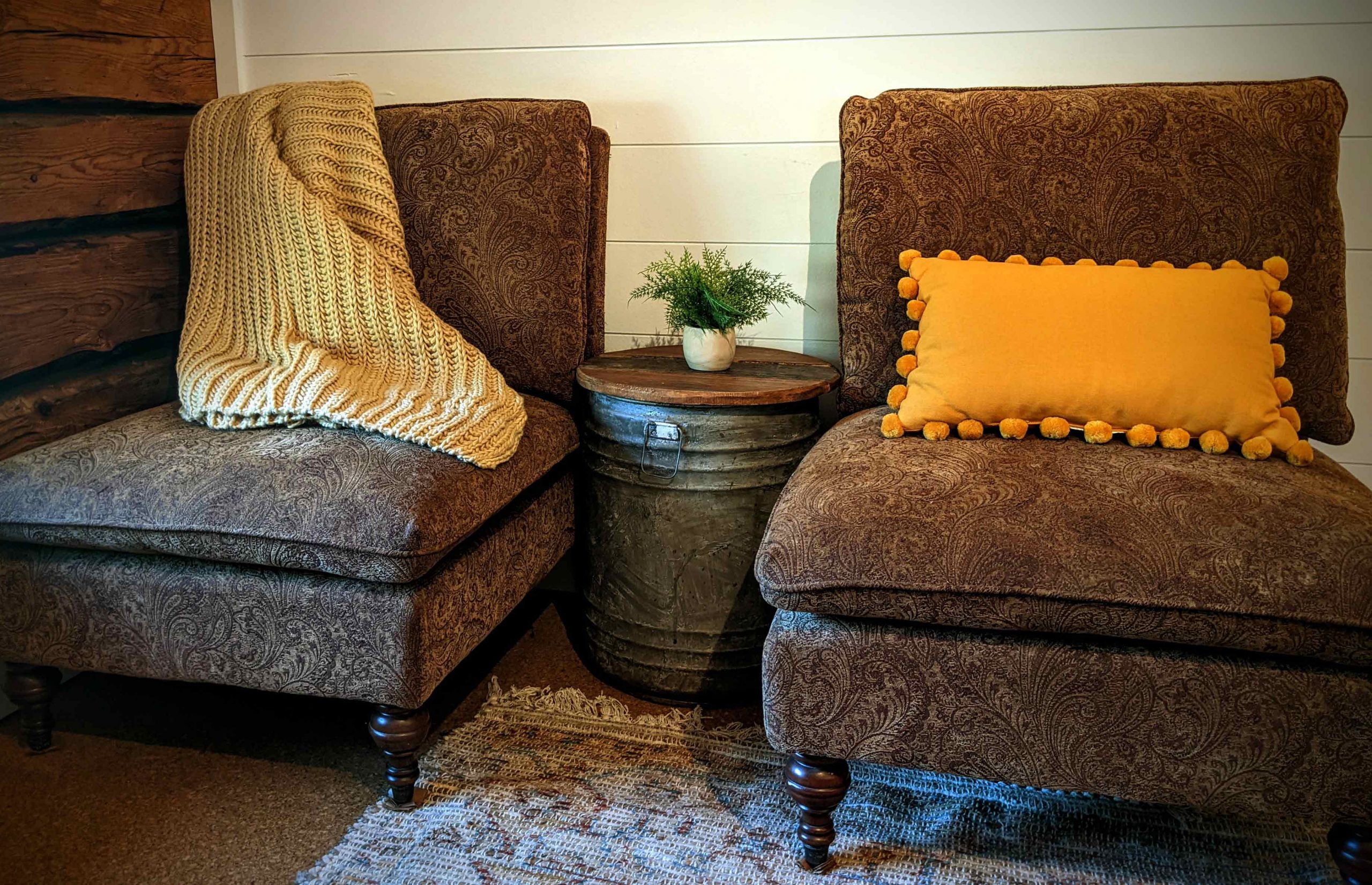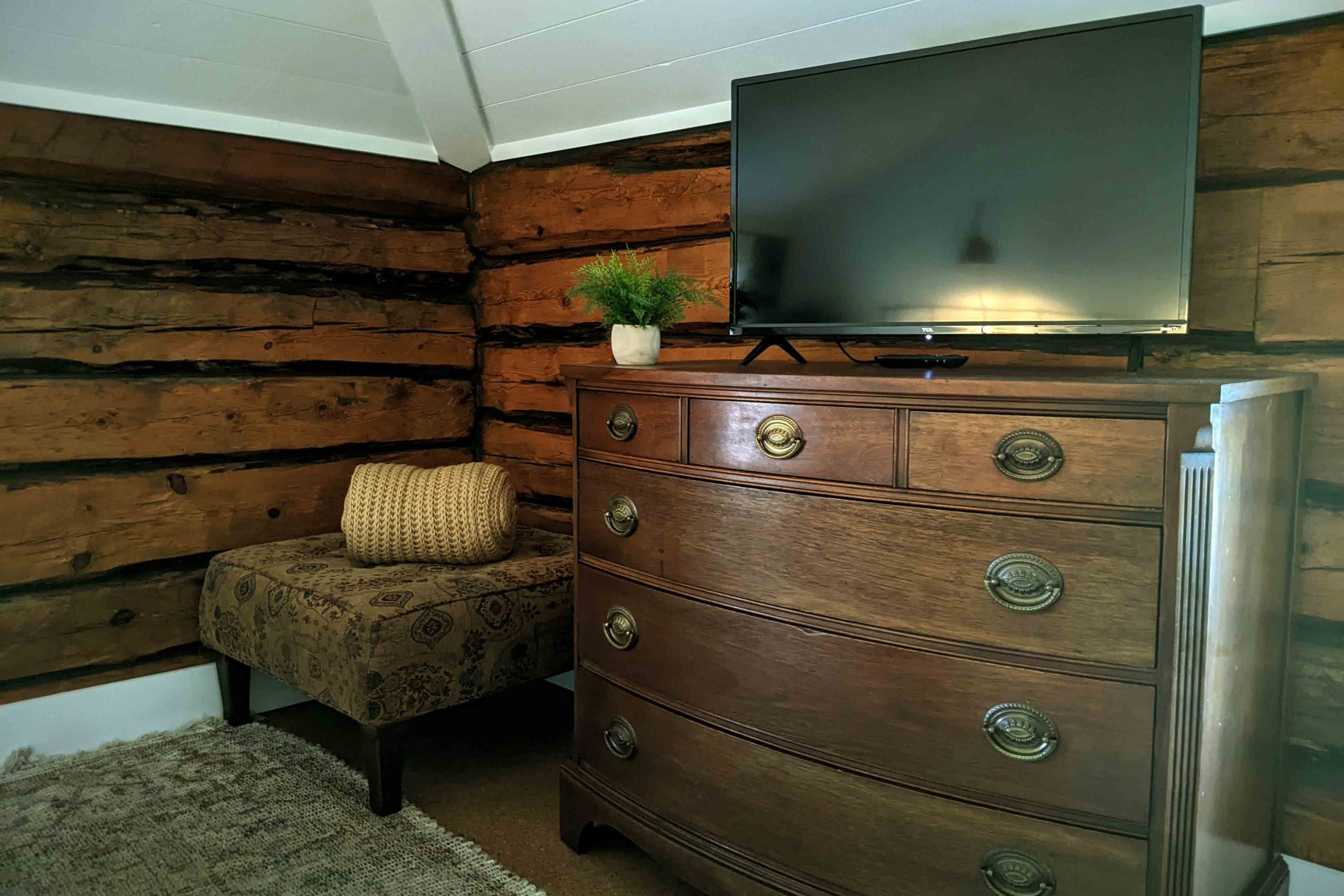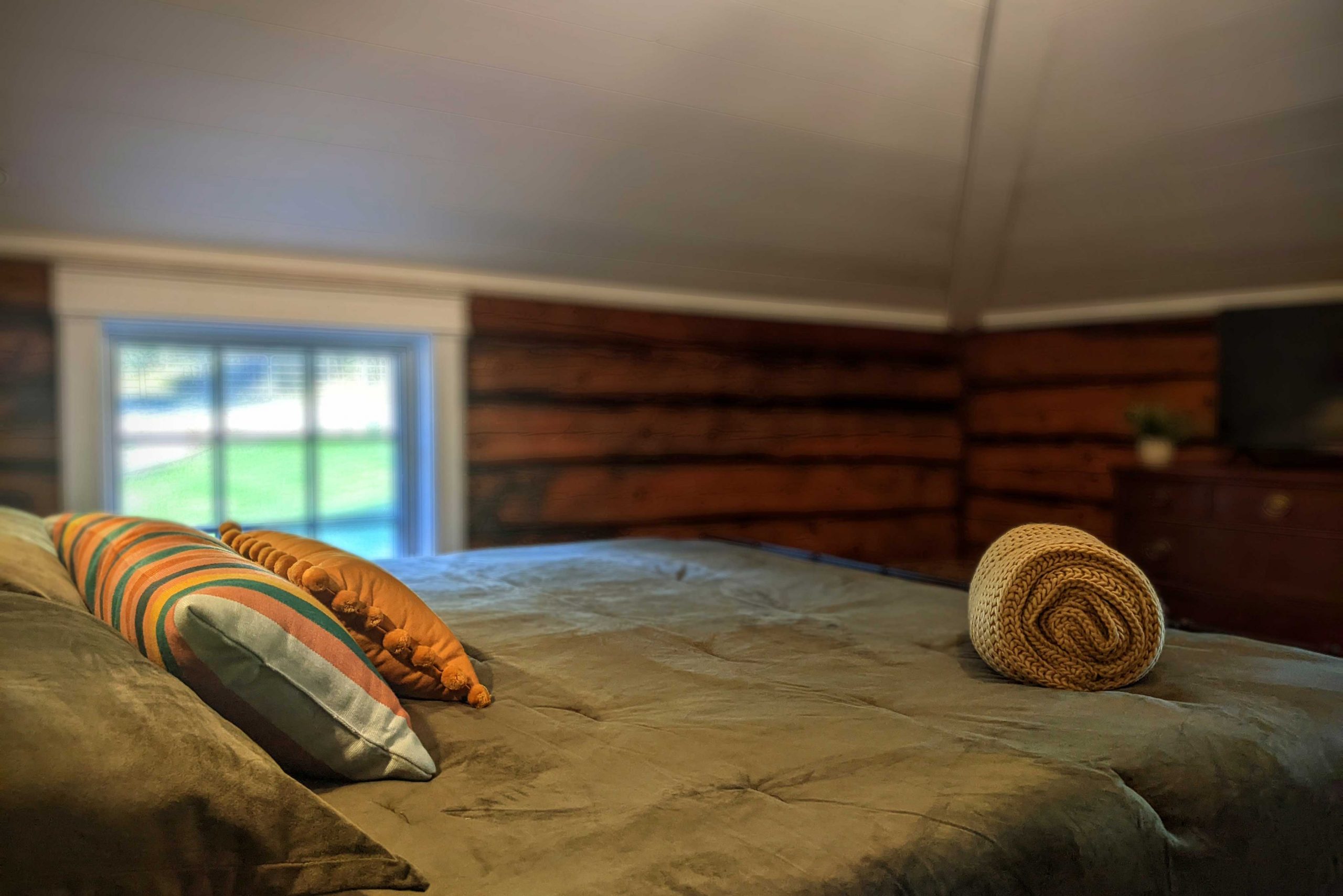 This bedroom is a cozy and cheerful place to unwind.